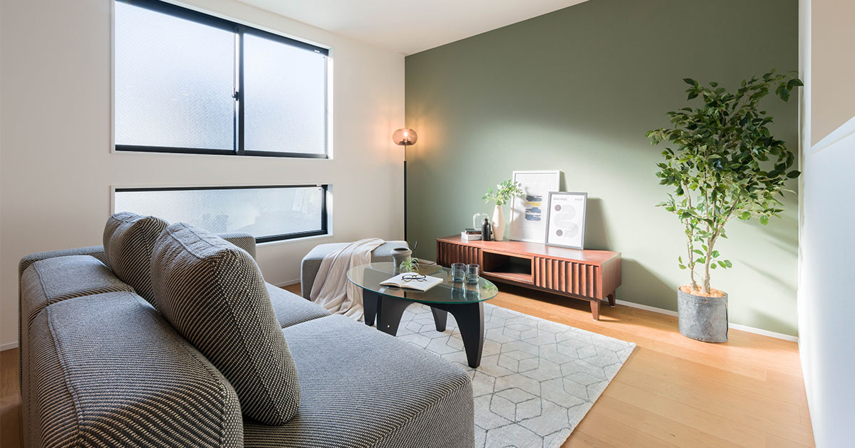 LDKは、横長の採光窓や縦長のスリッド窓が複数あり、家族団欒の場が明るい雰囲気で包まれます。