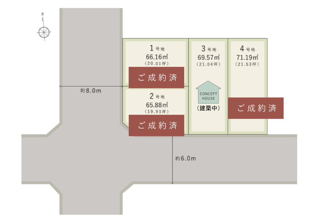 | 1号地 | 66.16㎡(20.01坪)※ご成約済み |