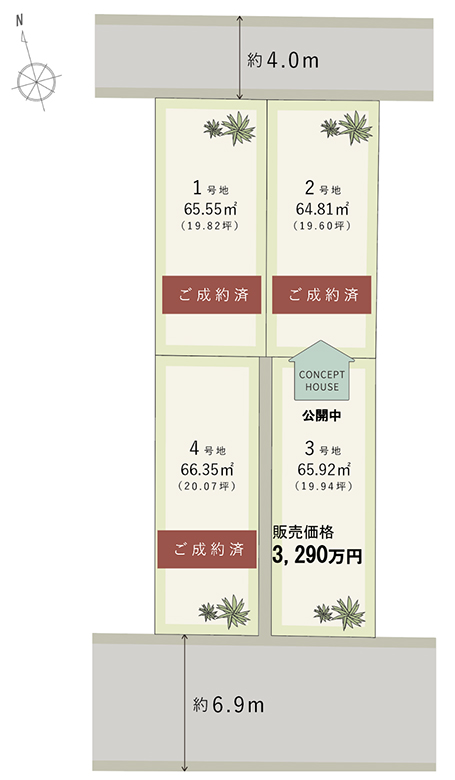 | 4号地 | 66.35㎡(20.07坪)※ご成約済み |
