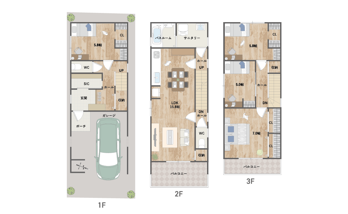 | 1号地 | 69.54㎡(21.03坪) ※ご成約済み |
