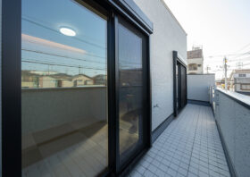 2階には建物幅いっぱいの7m超えワイドバルコニーを設置。鉢植えやアウトドアチェアを置いて楽しめる余裕があります。