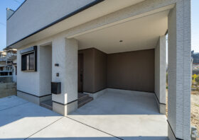 屋根付きのインナーガレージで、愛車を風雨から守ります。雨の日でも濡れずに家に出入り可能です。
