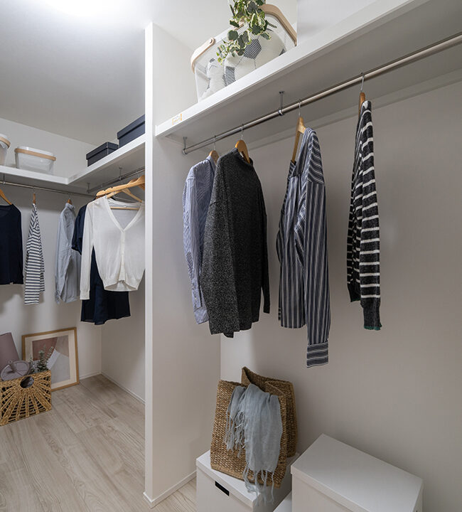 玄関のそばにウォークインクローゼットを配置。広めのスペースでゴルフバッグやコートもすっきり収納できます。