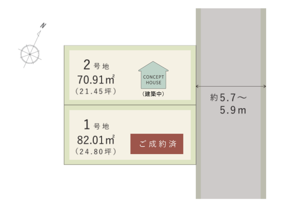 | 2号地 | 70.91㎡(21.45坪)※コンセプトハウス建築中 |
