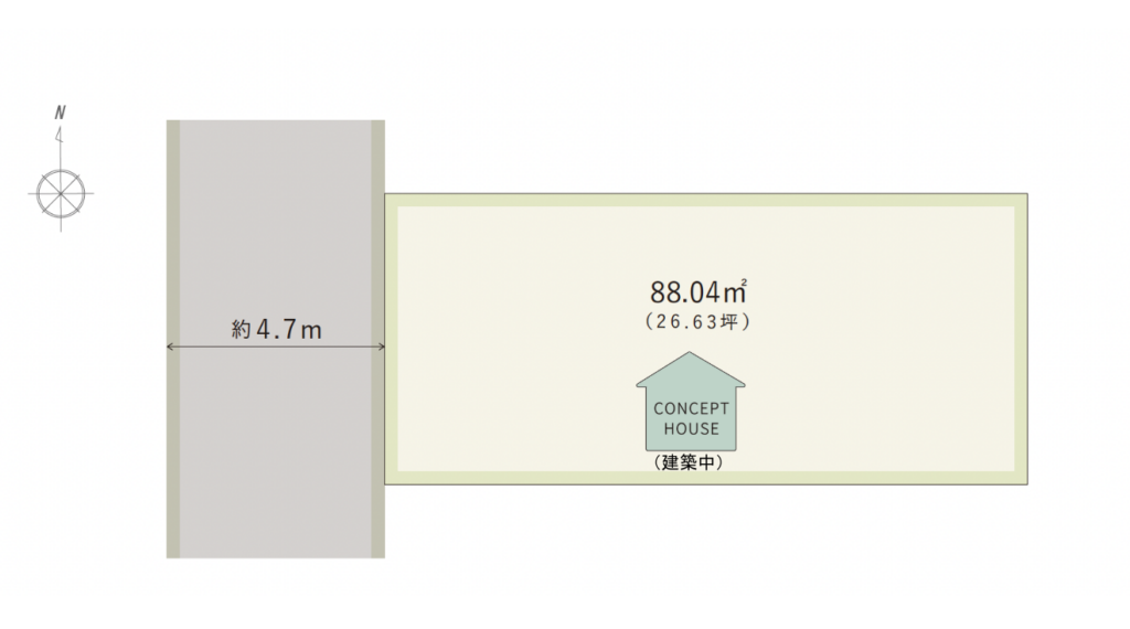 | 1号地 | 88.04㎡(26.63坪) ※コンセプトハウス建築中 |
