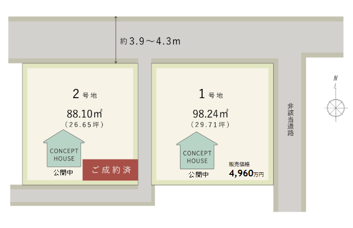2号地 | 88.10㎡(26.65坪)※ご成約済み |