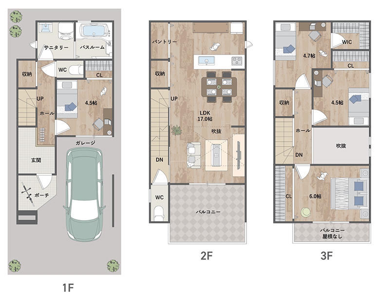 玄関には土間続きのシューズインクローゼットを設けてあり、ベビーカーなども畳まずに収納できます。