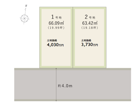 | 1号地 | 66.09㎡(19.99坪)※建築条件付宅地 |