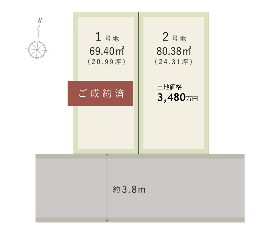 | 2号地 | 80.38㎡(24.31坪)※建築条件付宅地 |