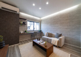 壁面や天井を優しく照らす間接照明は、空間に奥行きと広がりを感じさせます。穏やかな光がリラックスした雰囲気を演出し、夜の団らんをより上質な癒しの時間に変えてくれます。