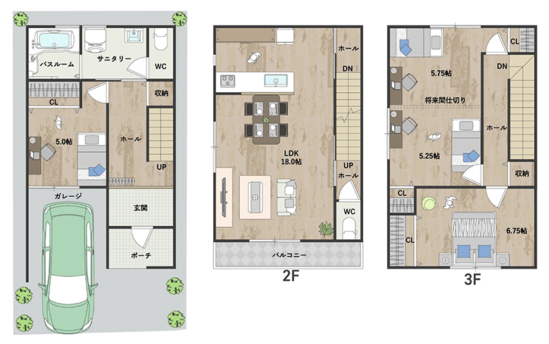 - 2階建て区画、3階建て区画。 7区画だから見付かる家族のかたち。