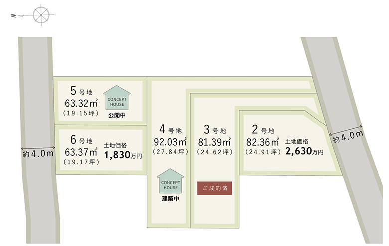 | 4号地 | 119.52㎡(36.15坪)※コンセプトハウス建築中 |