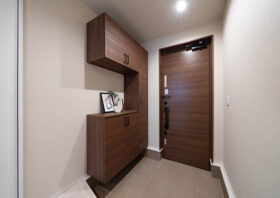 広々とした玄関ホールは、外出時の準備や帰宅時の整理がスムーズにできるゆとりのある空間です。