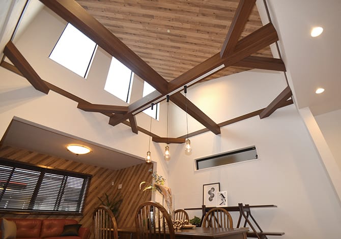 高窓や天窓からの光で、明るいLDKに。1日の光や風の変化が感じられ、毎日を感性豊かに過ごせます。