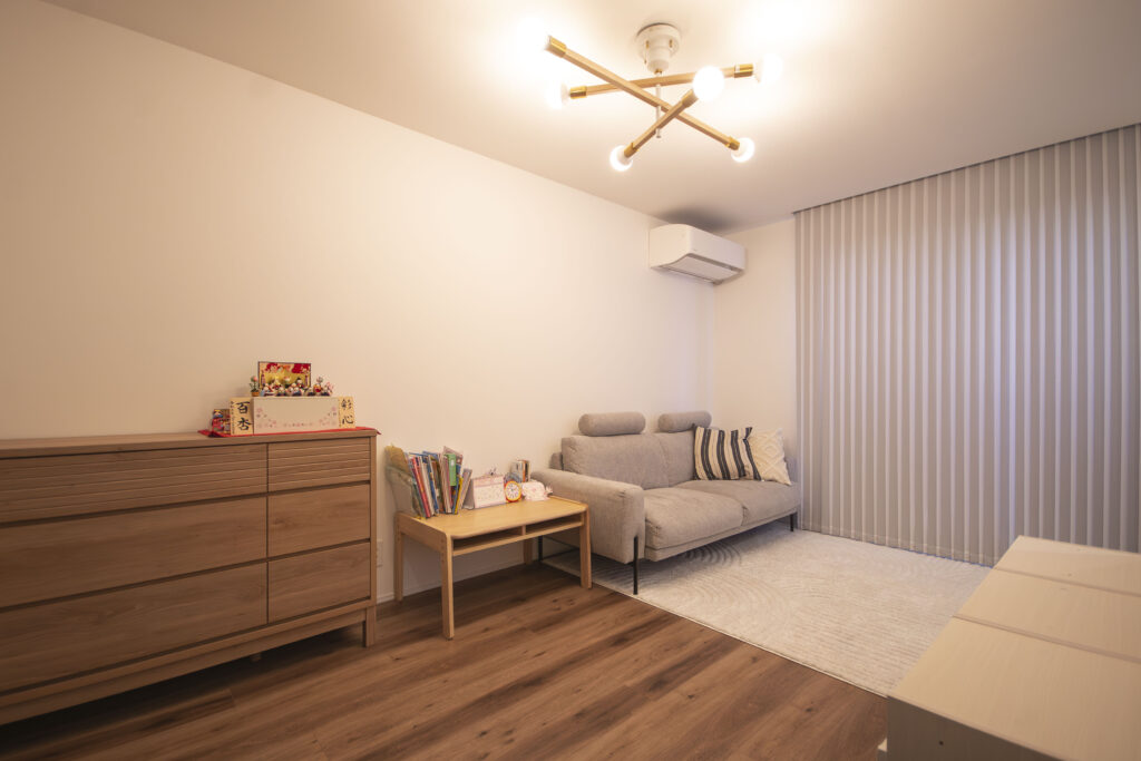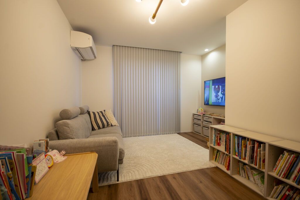 お子様のおもちゃをたっぷり収納しても家族全員がゆっくりできるスペースを確保しました。